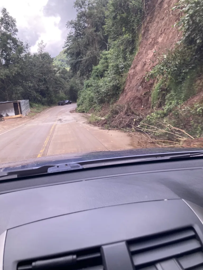 For us, the only road to the nearest city, then beyond is spotted with 5 or 6 small landslides. They’ve been cleared enough to only cover half or one lane, but it makes the drive very dangerous, and the situation changes with every new rain.
